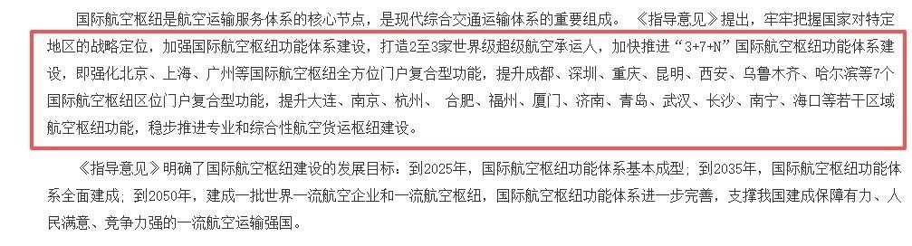 我国自2024年起全面推进“3+7+N”国家级机场功能分级体系。