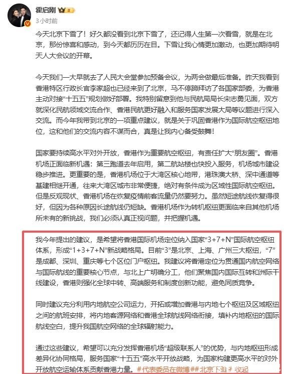 但真正引爆全网关注、赢得广泛共鸣的,是他关于香港航空枢纽建设的核心提案。