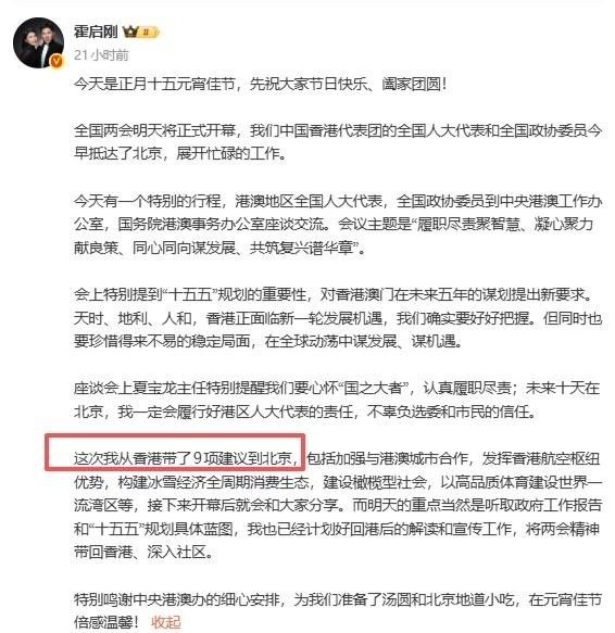 许多人并不知晓,霍启刚早已有过多次“提案即落地”的亮眼实绩。